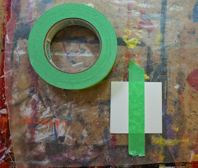 With masking tape place a strip down the middle of a square.