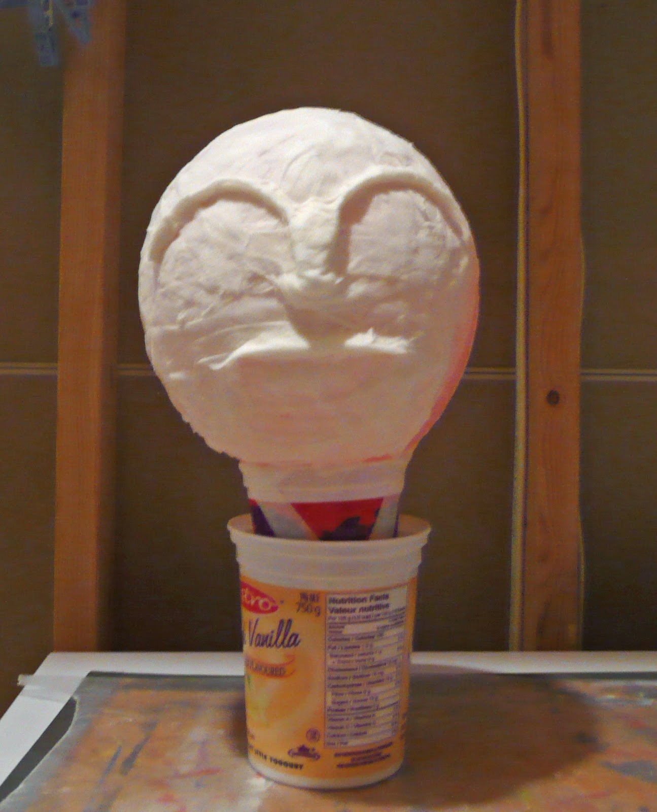 Leave upright to dry. Here I placed the cup I had taped to my balloon into another old yogurt container. You might have to put some weight into the container to keep that balloon upright.