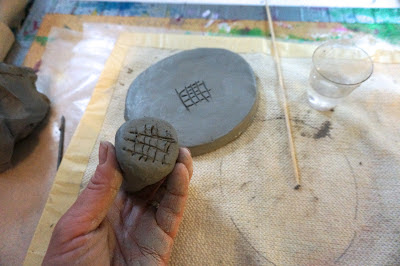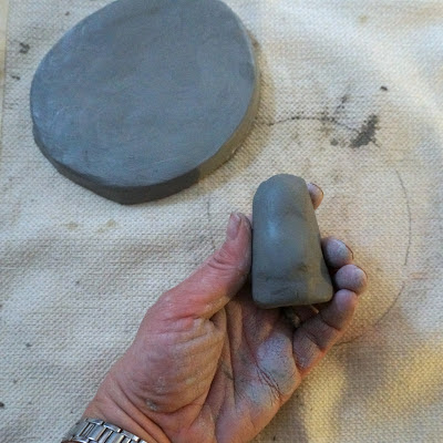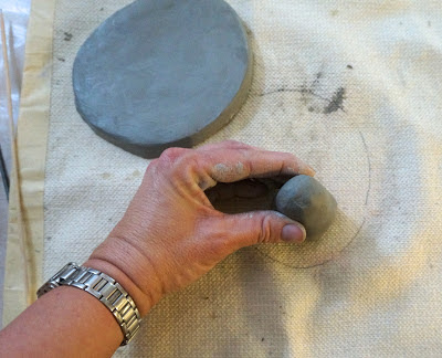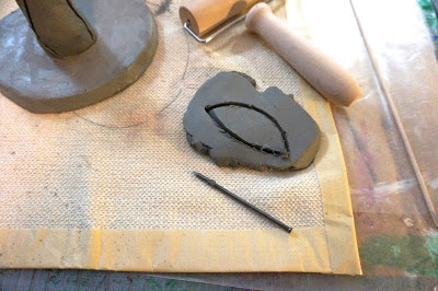 Roll out a slab with your rolling pin. Cut a piece off your clay block and then roll to about 3/4's of an inch thick.