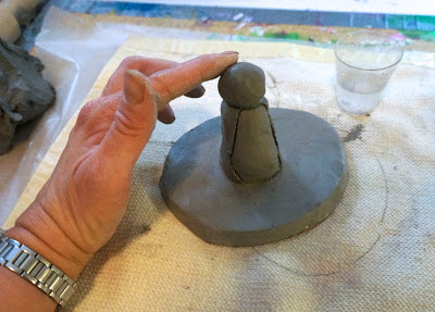 You want a good place for your head to sit so take your finger and make a depression at the top of the body where your head will sit.