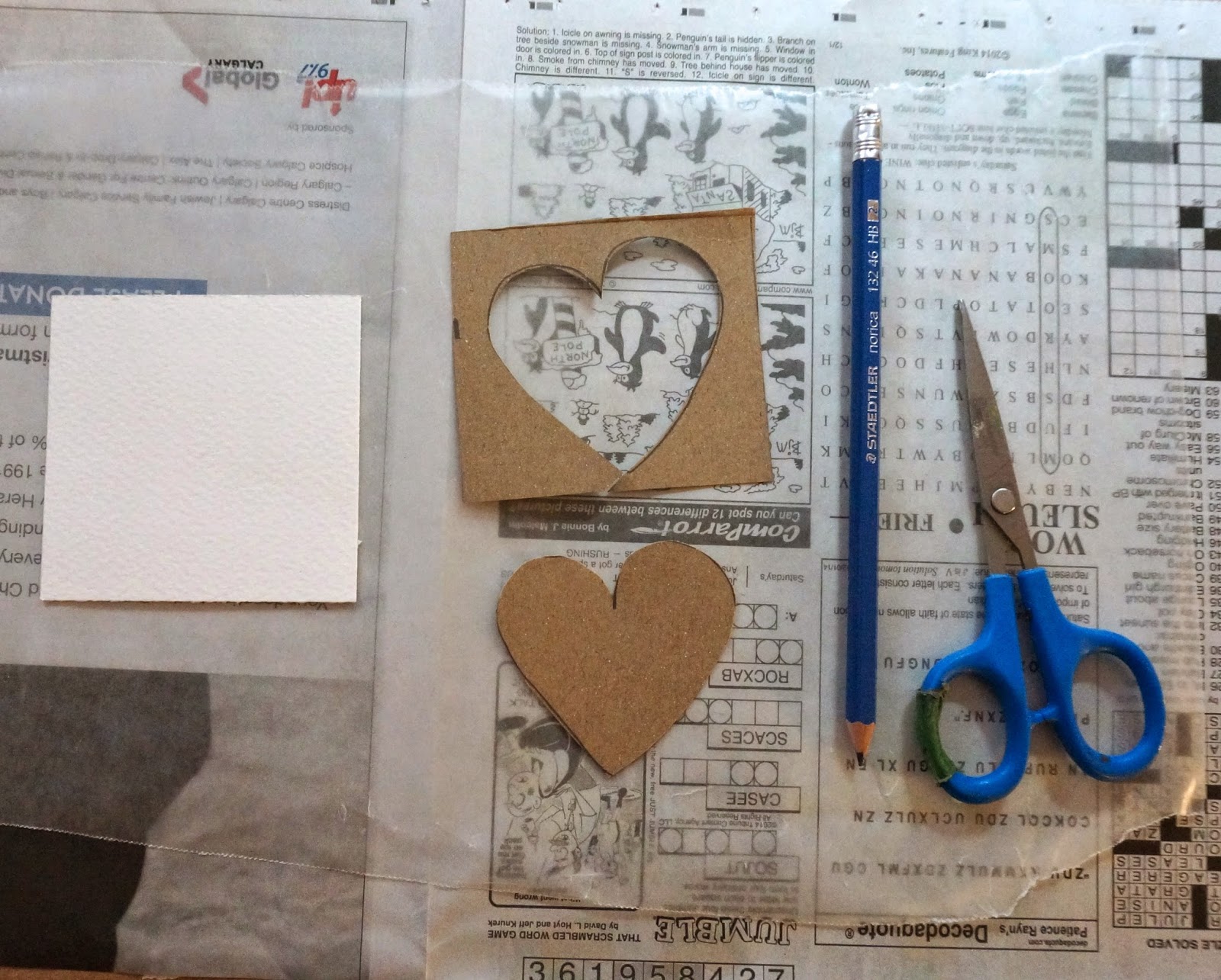 - cut out cardboard heart and drywall