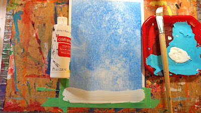 Tape off your background paper. Using blue disk tempera paint your background.