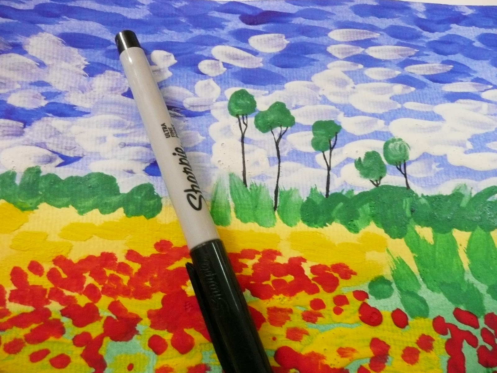 - black sharpie, pencil crayon,