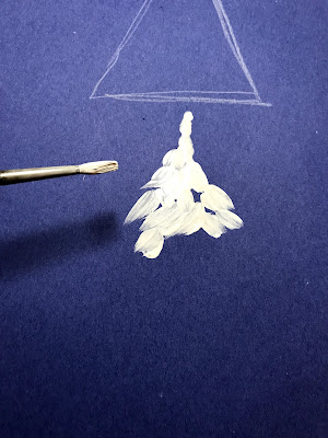 Add a few paint strokes, don't worry about the blue paper showing thru those are the shadows.